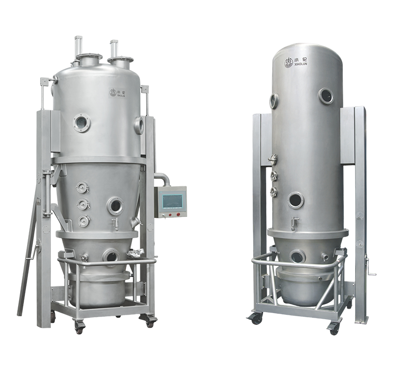 当要求为流化床干燥制粒时.提供粘合剂搅拌罐与蠕动泵喷枪系统,将粘合剂通过喷枪注入料仓,并在压缩空气作用下雾化喷射到物料表面;物料的颗粒之间通过粘合剂粘接桥架形成母粒,逐渐长大形成符合要求的湿颗粒,并在热空气作用下将粘合剂干燥获得均匀的干颗粒。