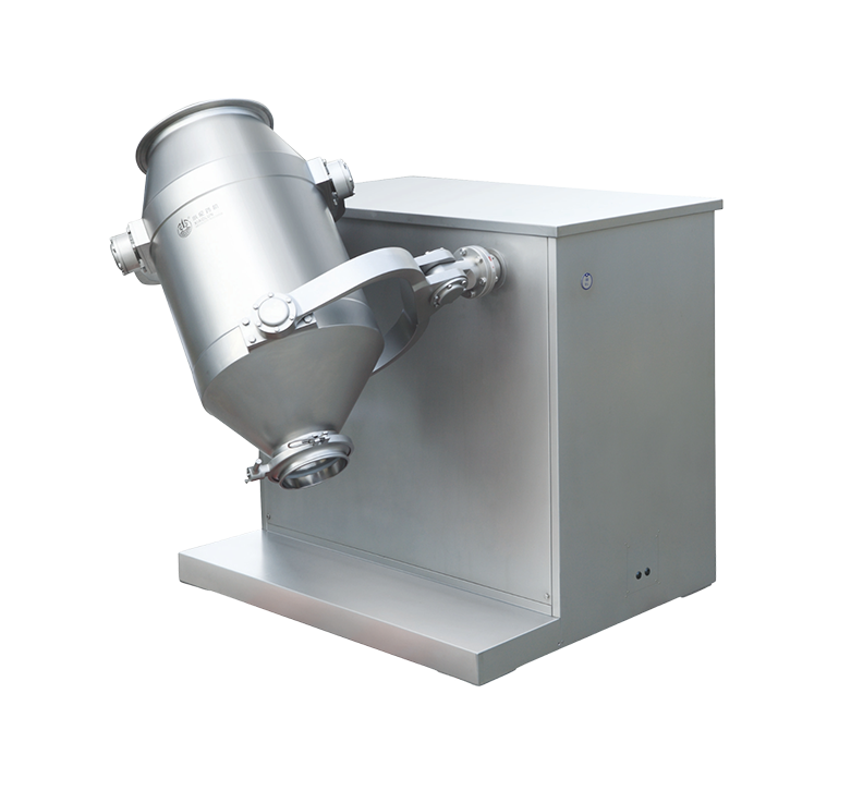 由空间呈交叉且相互垂直,分别由Y型万向节联接的主、从动轴支撑混合桶,使其在立体三维空间上做独特的平移、倒置、翻转运动,使物料在混合过程中,加速了流动和扩散作用,同时避免了一般混合机因离心力作用所产生的物料比重的偏析和积聚现象,使物料在短时间内达到理想的混合效果。