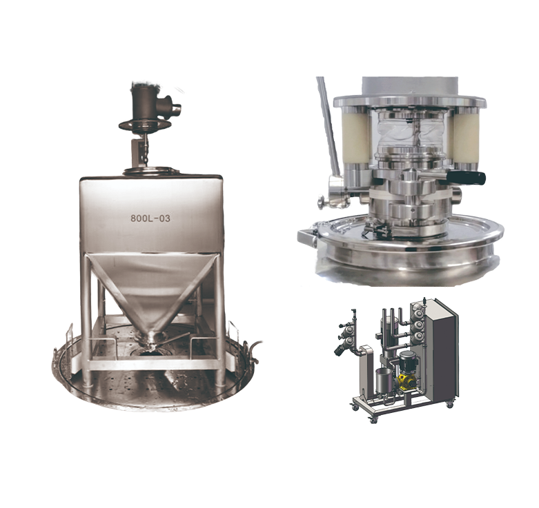 该机由不锈钢框架、立式多级泵、气动阀门、新风采集过滤加热装置、气动控制系统、电气控制系统等组成。工作时,将要清洗的混合料斗等容器打开桶盖、推到固定位置即可。在人机界面设定清洗配方,比如清洗水压、水温、清洗剂量、烘干时间,点击启动按钮,清洗过程自动进行,如果需要清洗料斗外壁,可用水枪冲洗。